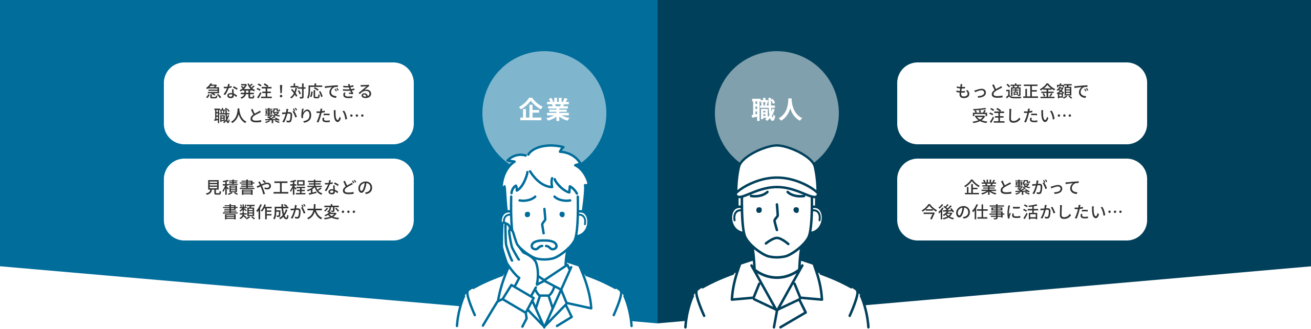 中抜き業者を介さずに元請け企業と職人が直接繋がることで、適正な報酬で仕事を受注できる環境を提供します。