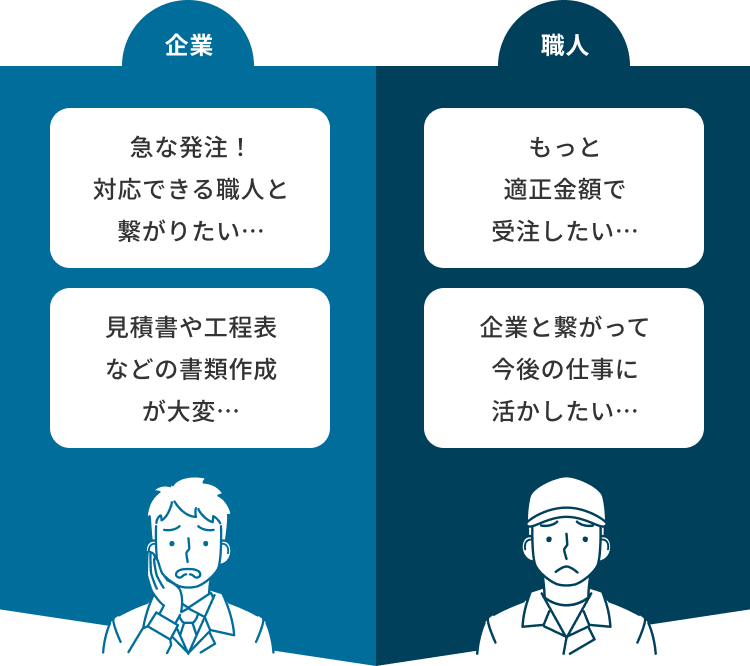 企業と職人を直接つなぐマッチングサービスです。中抜業者を介さないので、適正な報酬で仕事を受注出来るようになります。